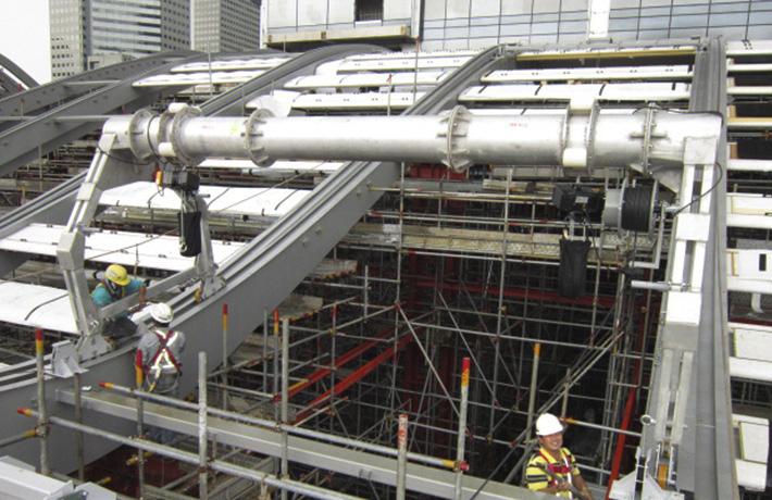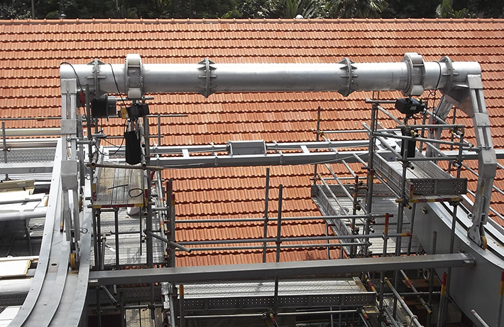 This lightweight aluminium gantry with a hoisting capacity of 500kg is designed to travel on “wave like” canopies and is entirely operated via remote control.